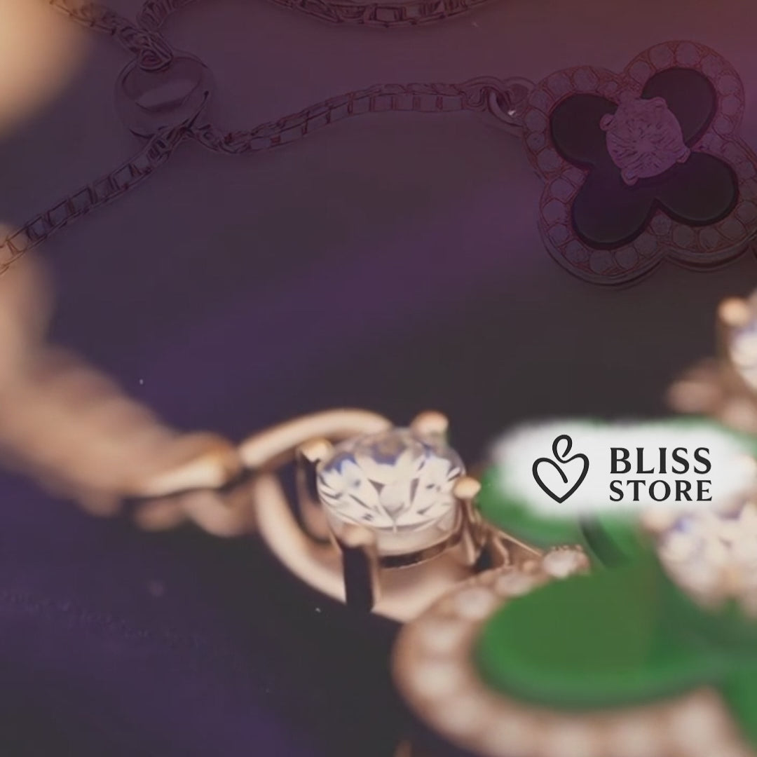 The four-leaf clover charm catches the light with every movement, reflecting your style and grace.